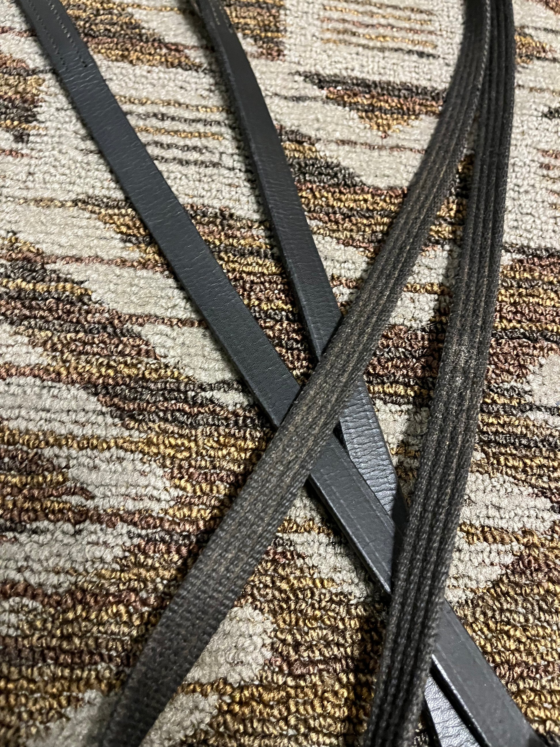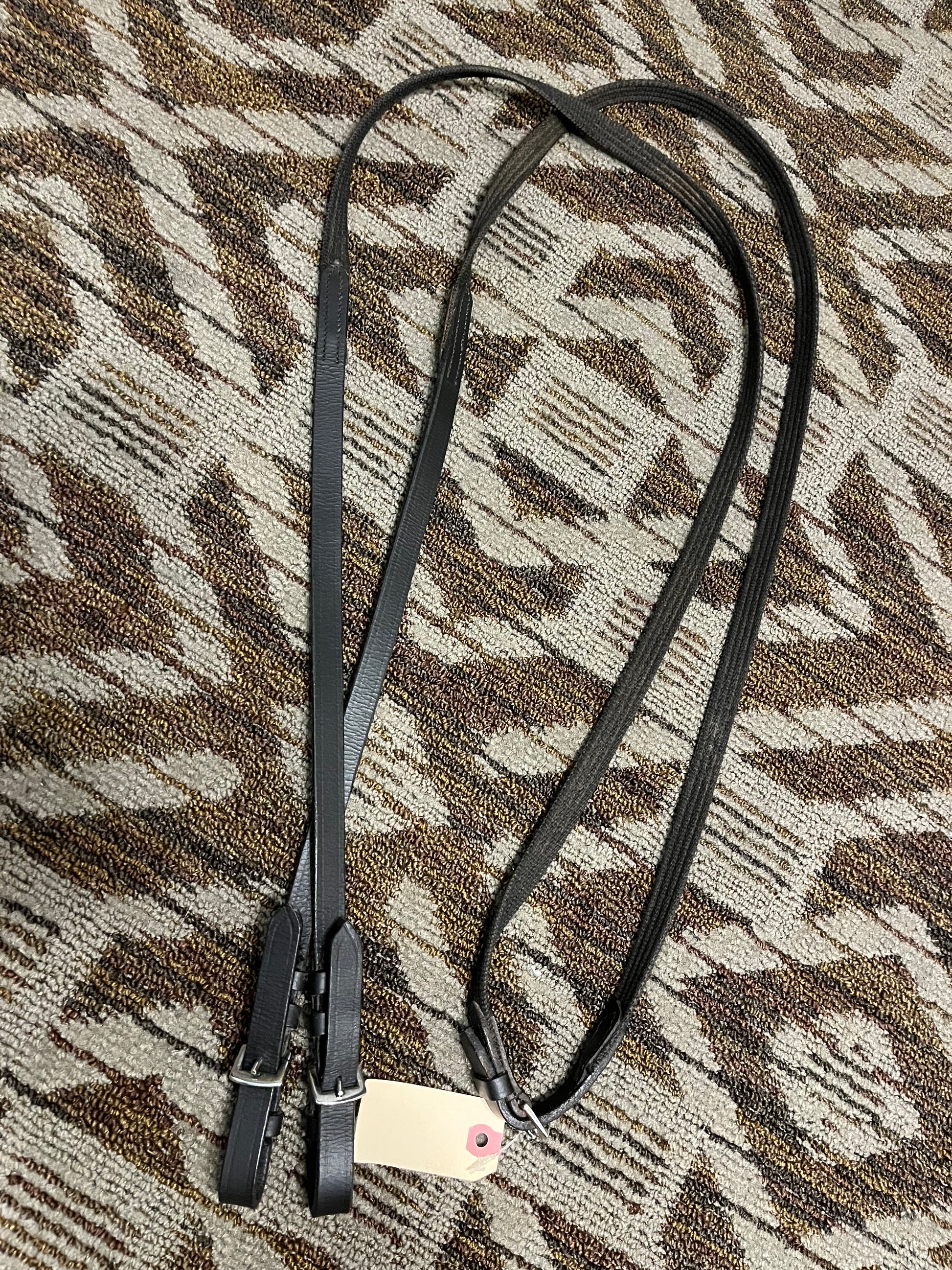 Black leather and cotton reins, 104”