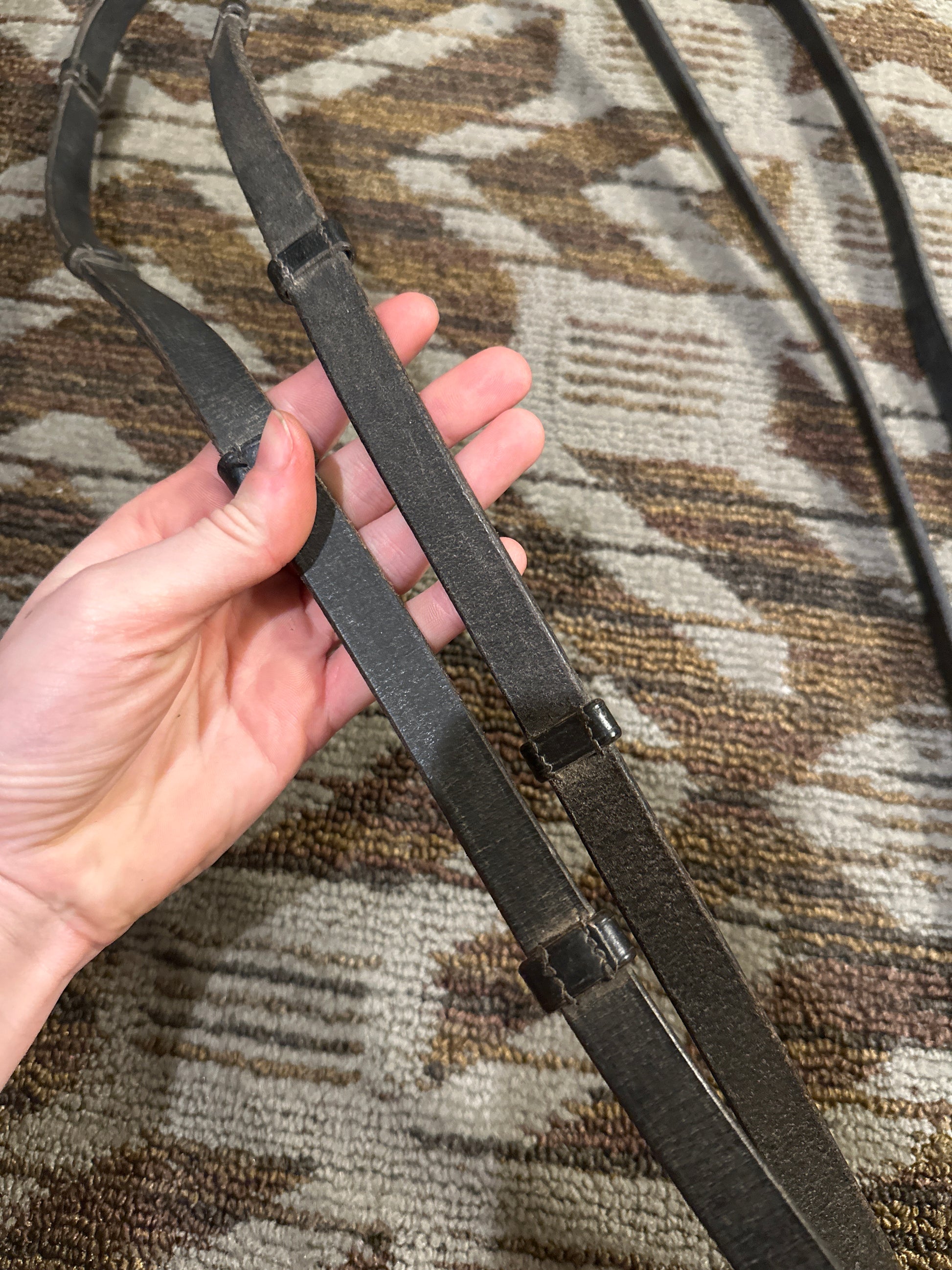 Black Leather Webbed Reins