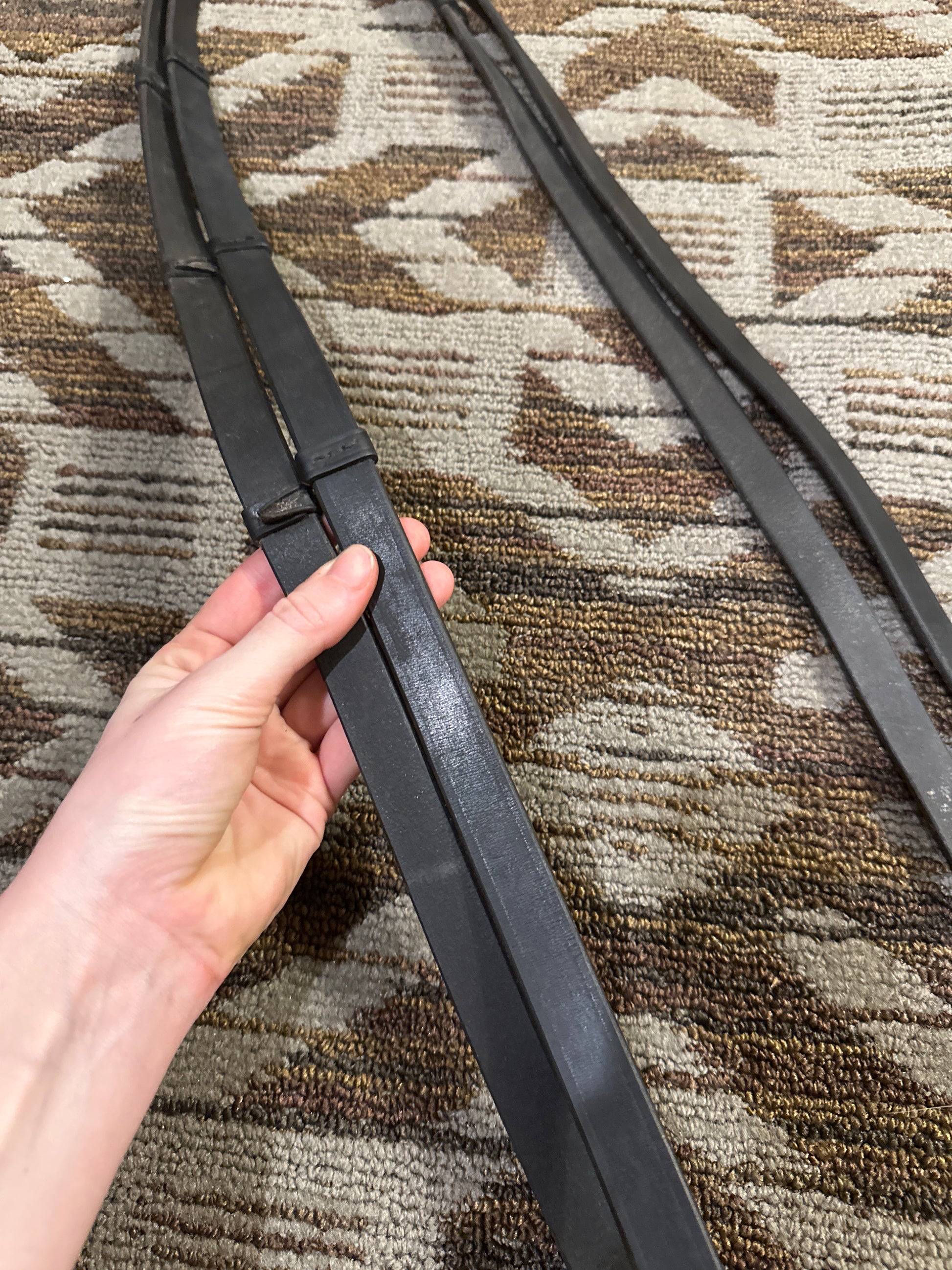 Black Leather Webbed Reins w/ Hand Stops