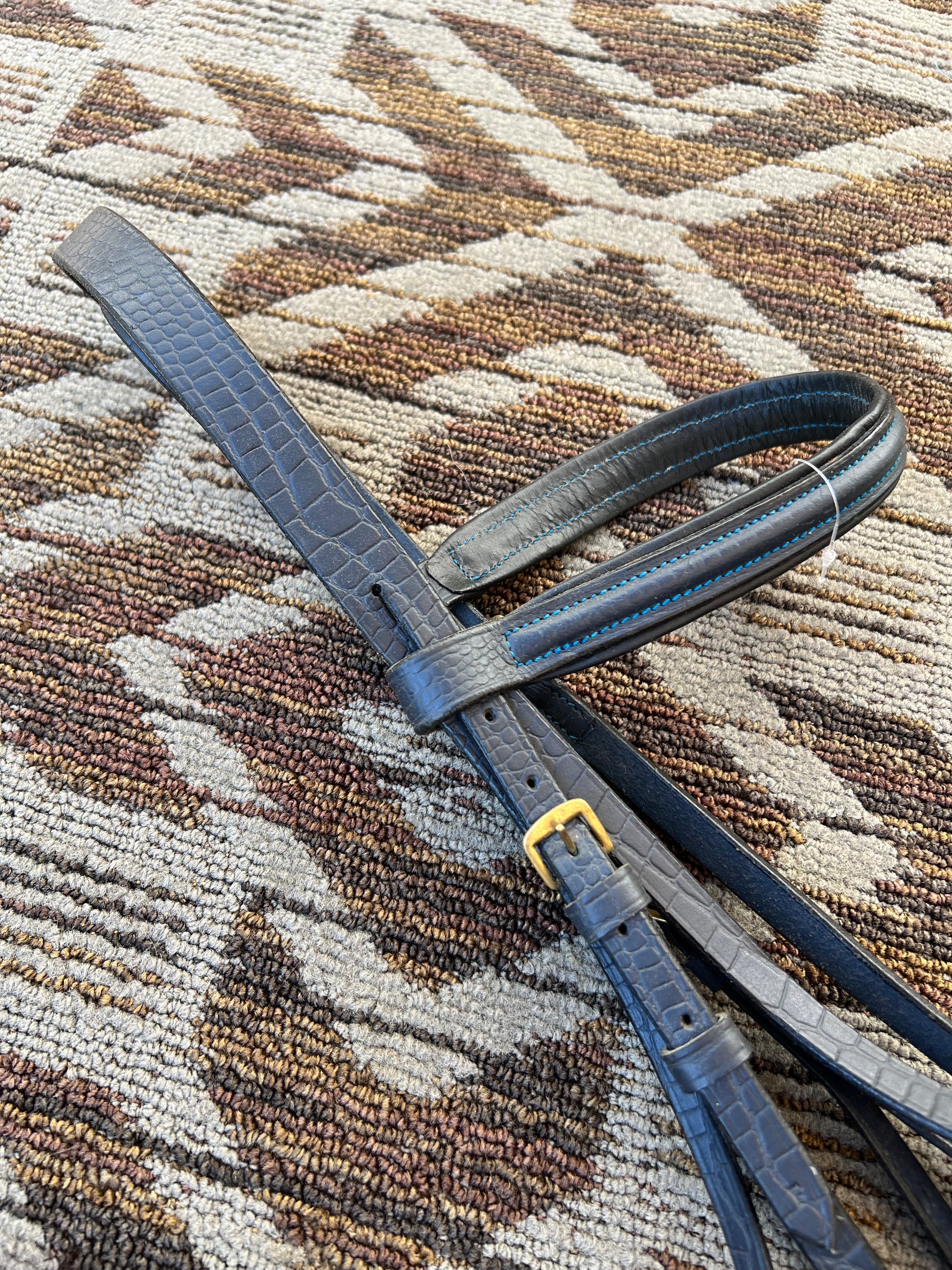Dark Blue Alligator Print Dressage Bridle