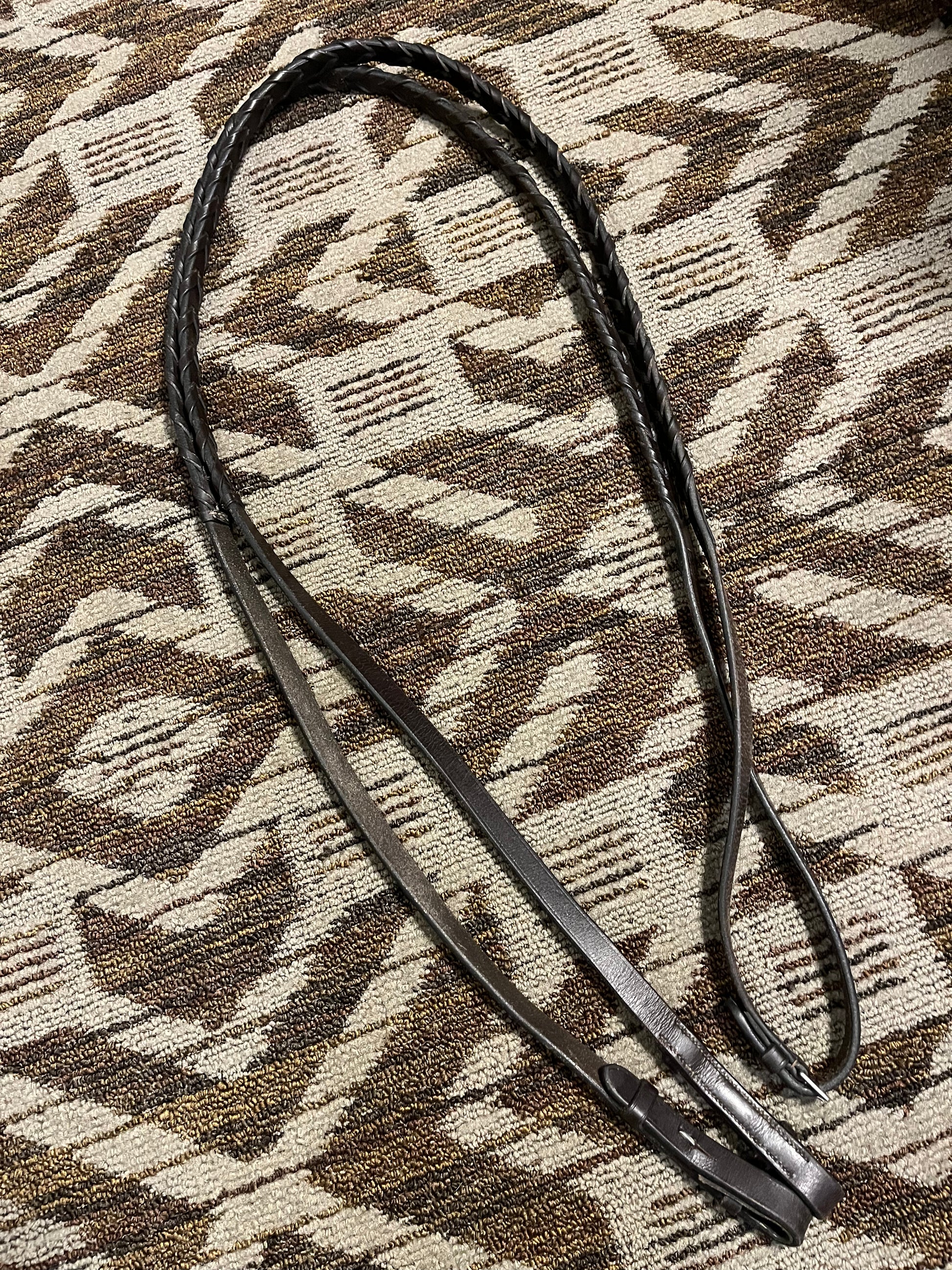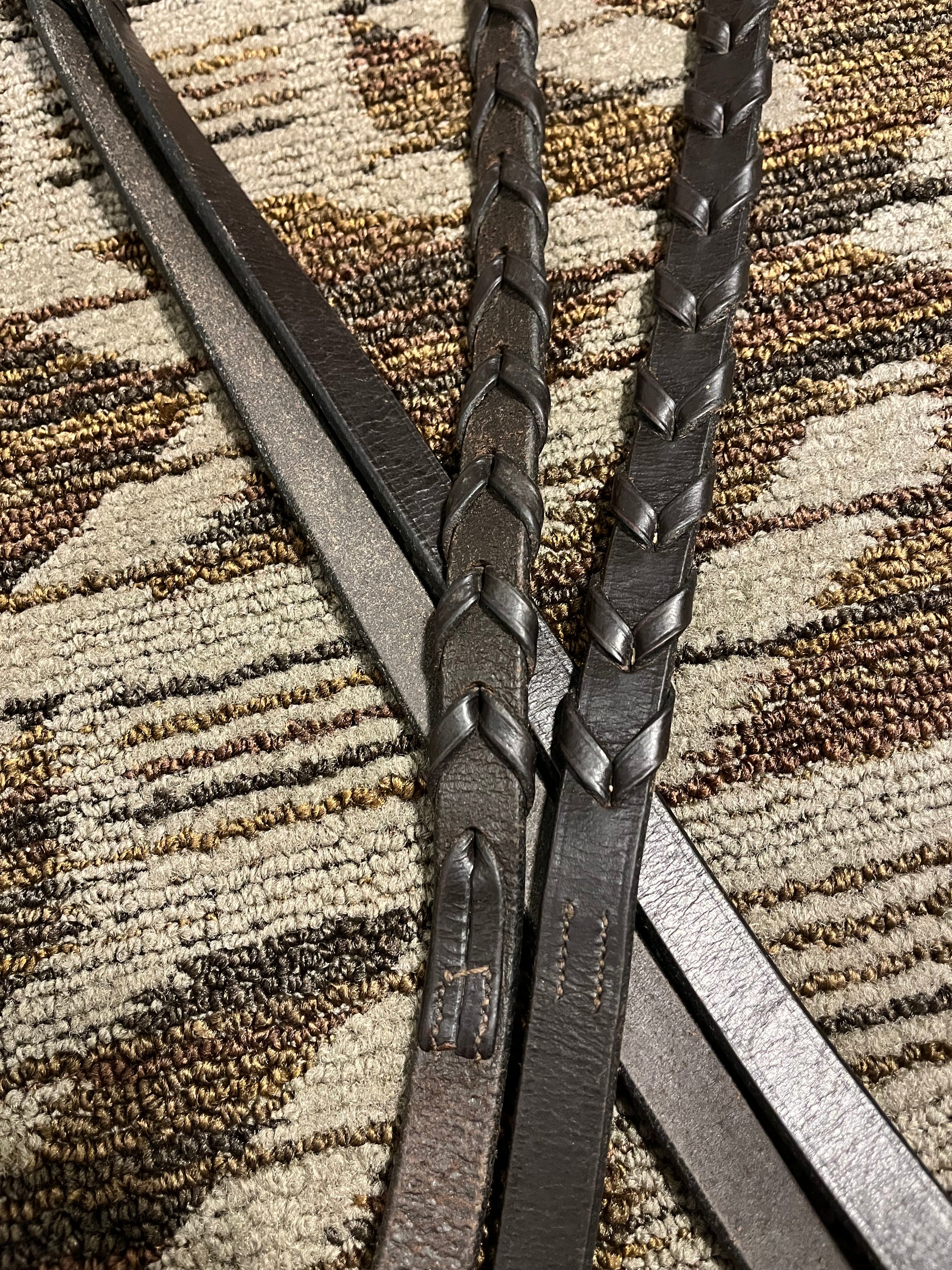 Super soft dark brown leather laced reins, 120”
