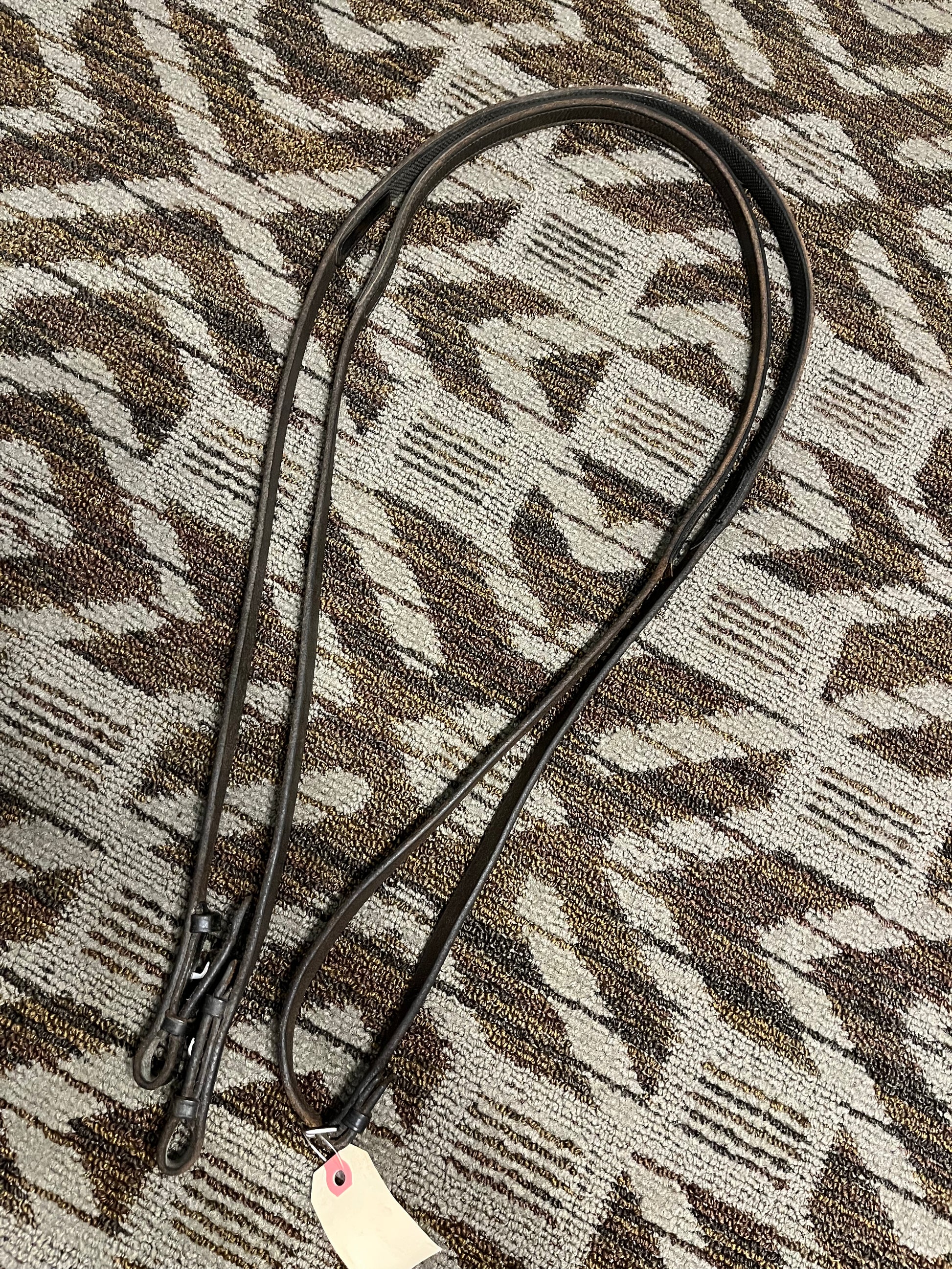 Brown leather curb reins with rubber backing, 112”
