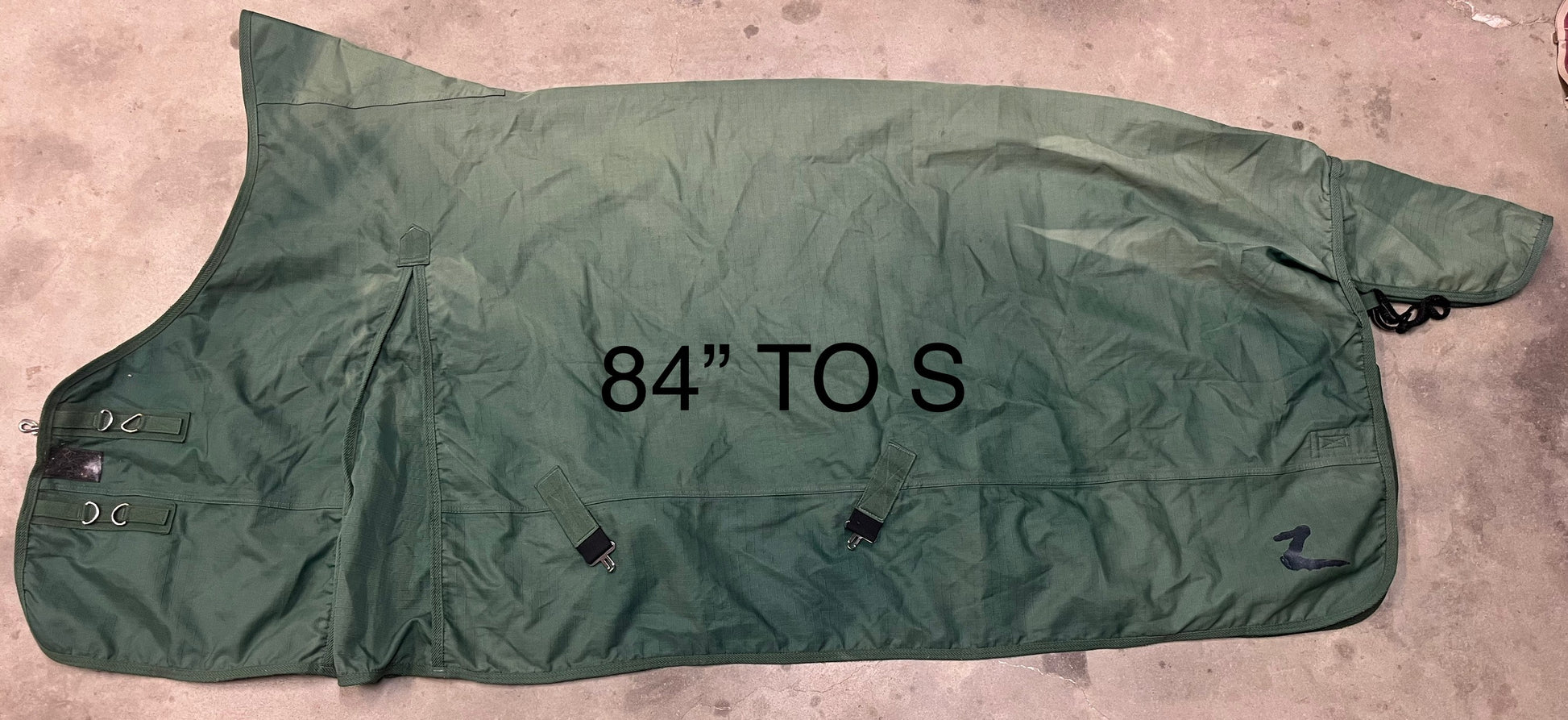 Horze high neck turnout sheet. In good condition, some discoloration from the sun.